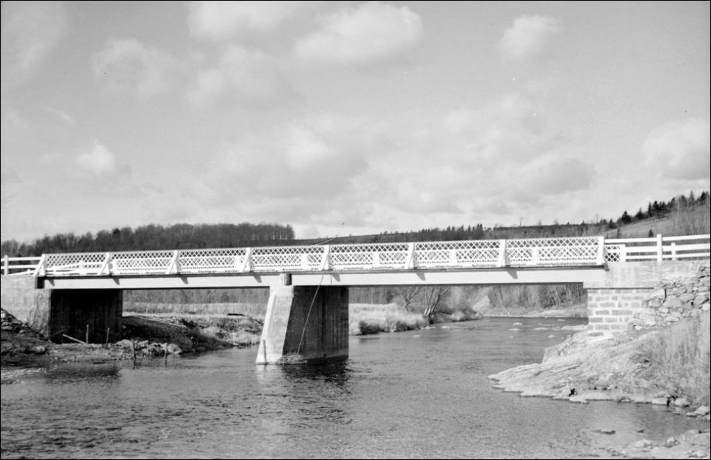Vue des garde-corps du pont du rang X à Saint-Christophe, comté d'Arthabaska, 1948, Archives nationales à Québec, Fonds Ministère de la Culture et des Communications, (03Q,E6,S7,SS1,D2,P67795), Louis-Philippe Poudrier.