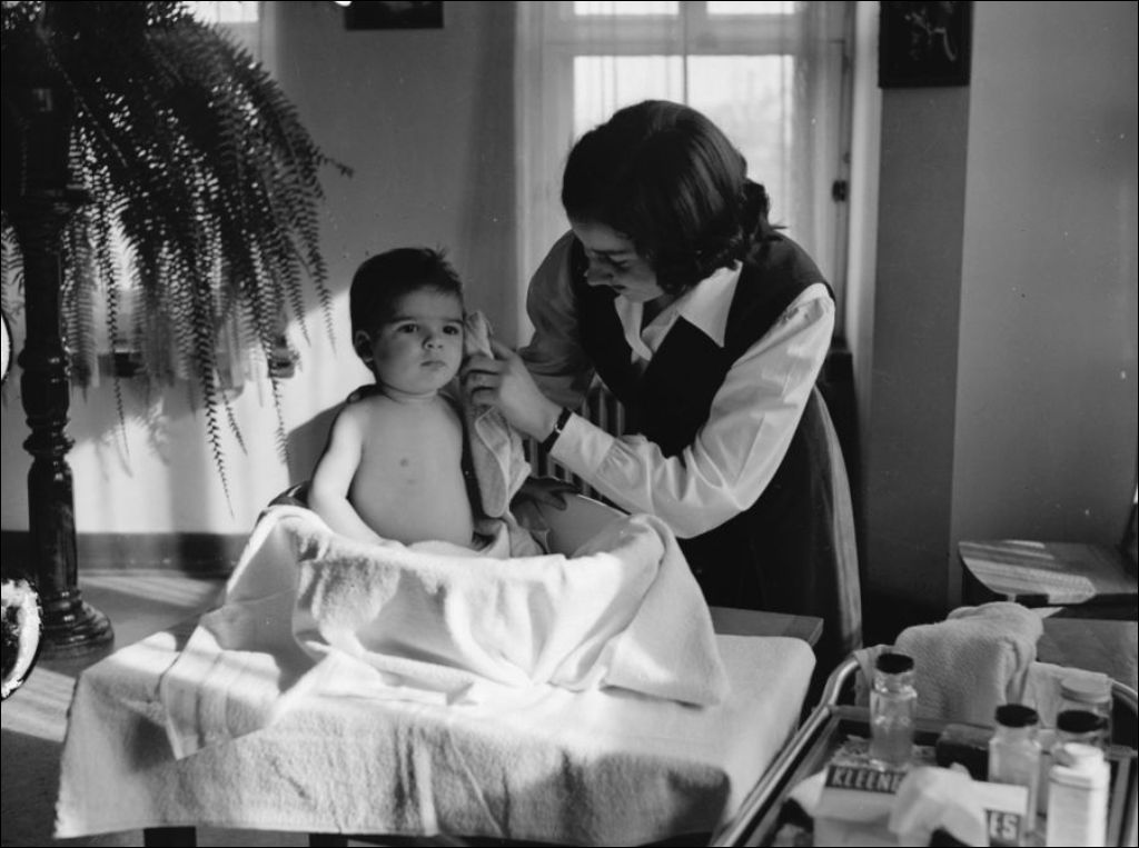 Pédiatrie à l'hôpital Saint-Joseph à Saint-Vallier, 1948, Archives nationales à Québec, Fonds Ministère de la Culture et des Communications, (03Q,E6,S7,SS1,D2,P67821), Fernand Rivard.