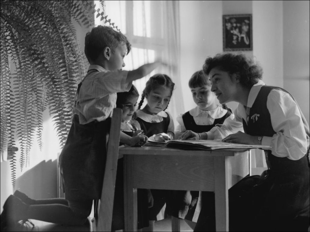 Cours de pédagogie familiale dans une école d'enseignement ménager