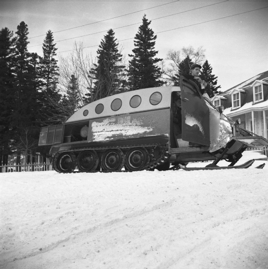 Trafic des autoneiges à Tadoussac, 1948, Archives nationales à Québec, Fonds Ministère de la Culture et des Communications, (03Q,E6,S7,SS1,D2,P68265), Gustave Bédard.