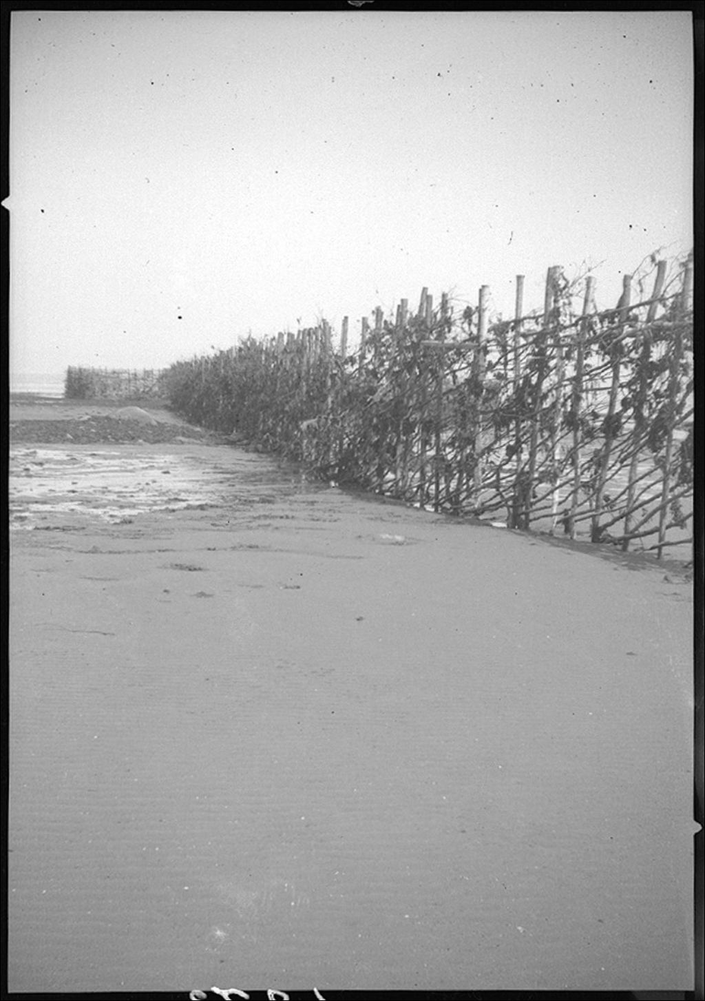 Barrage d'amenée d'une pêche en fascines à Sainte-Luce, 1942, Archives nationales à Québec, Fonds Ministère de la Culture et des Communications, (03Q,E6,S7,SS1,D2,P6873), G. Gaudet.