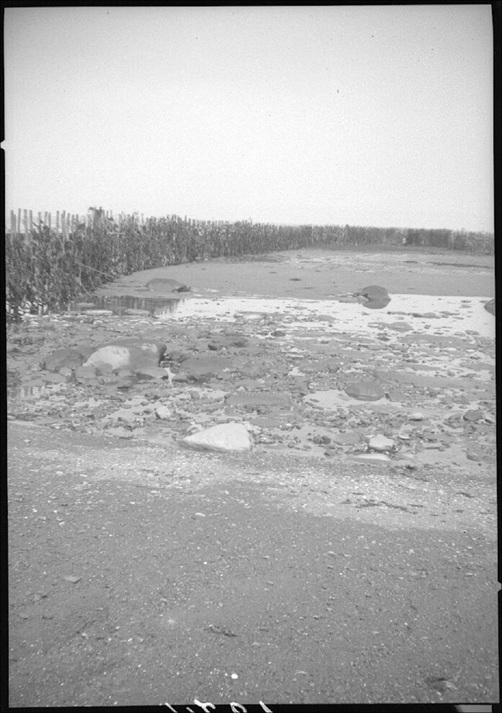Barrage d'amenée d'une pêche en fascines à Sainte-Luce, 1942, Archives nationales à Québec, Fonds Ministère de la Culture et des Communications, (03Q,E6,S7,SS1,D2,P6874), G. Gaudet.