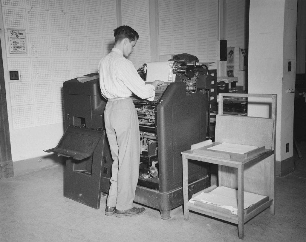 Reportage. Machines automatiques comptables à l'Industrie et Commerce. Québec, 1949, Archives nationales à Québec, Fonds Ministère de la Culture et des Communications, (03Q,E6,S7,SS1,D2,P69251), Neuville Bazin.