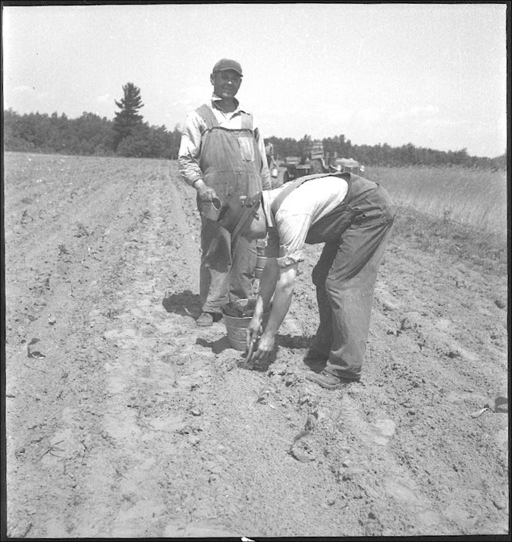 Repiquage des plants de tabac jaune, 1942, Archives nationales à Québec, Fonds Ministère de la Culture et des Communications, (03Q,E6,S7,SS1,D2,P6951), Georges Gauthier.