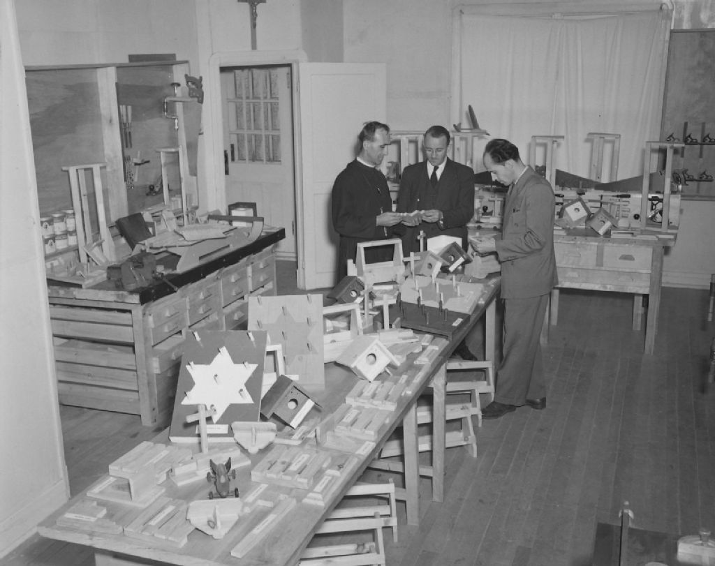Visite à l'école Richelieu. Travaux manuels. Charlesbourg, 1949, Archives nationales à Québec, Fonds Ministère de la Culture et des Communications, (03Q,E6,S7,SS1,D2,P69695), Neuville Bazin.