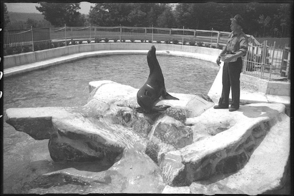 Otarie au jardin zoologique de Québec, 1942, Archives nationales à Québec, Fonds Ministère de la Culture et des Communications, (03Q,E6,S7,SS1,D2,P6993), Richard Bernard.