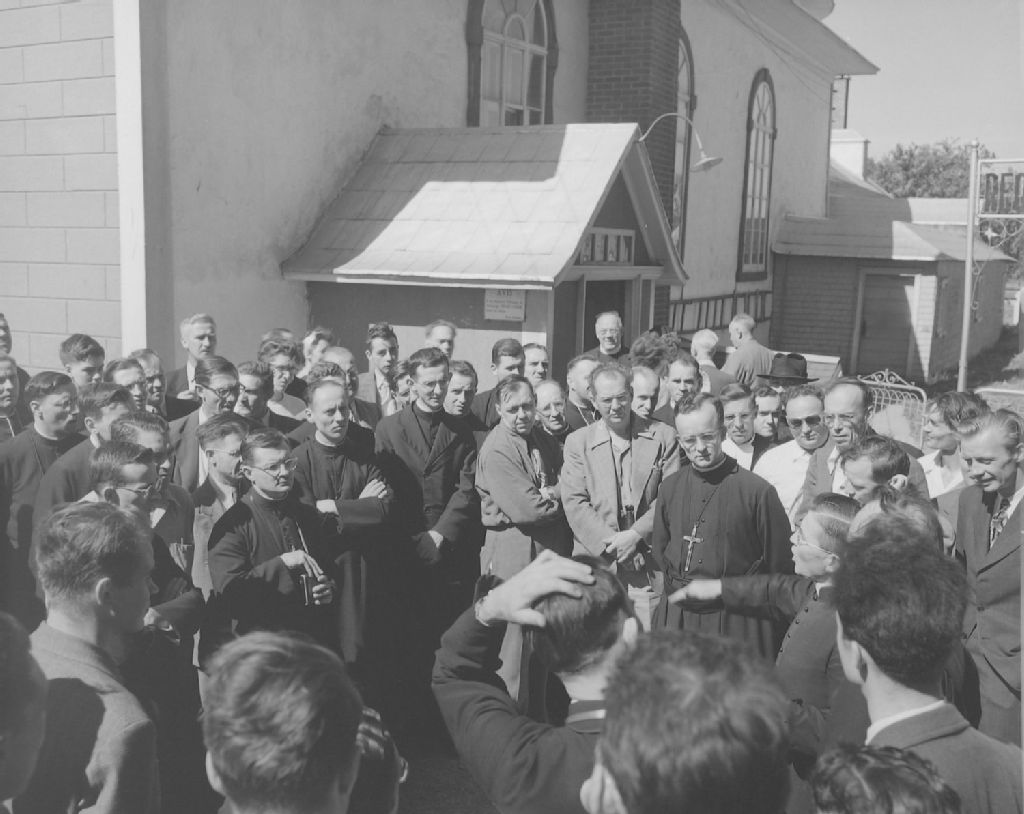 Curé et étudiants. Visite de l'église. Saint-François, île d'Orléans