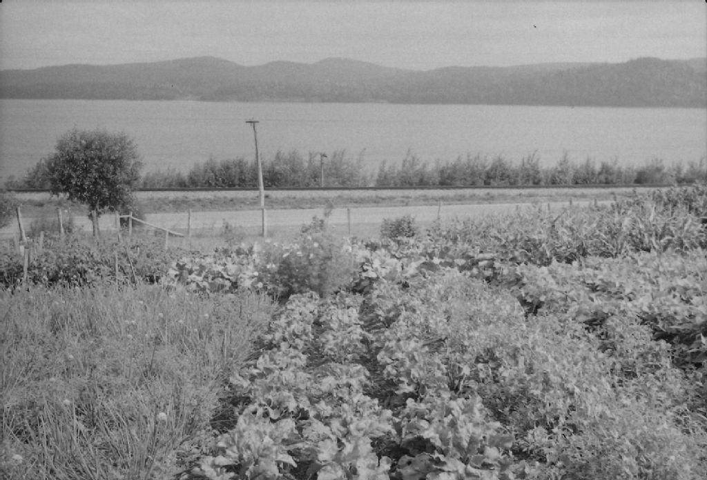Jardin et lac chez monsieur J.P. Pelletier à Val-Brillant, 1949, Archives nationales à Québec, Fonds Ministère de la Culture et des Communications, (03Q,E6,S7,SS1,D2,P71520), Maurice Saint-Pierre.