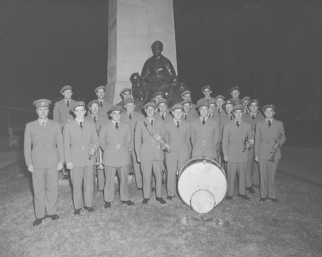 La musique du 22e Régiment, au pied du monument Hébert, à l'occasion d'une cérémonie à laquelle ont pris part les membres de l'Association canadienne des éducateurs de langue française. Collège Jésus-Marie, Sillery