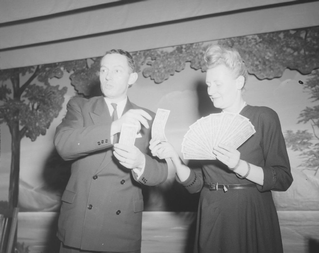 Trois scènes du spectacle donné par monsieur Barbier et son épouse, lors de la réception des pèlerins du Comité Marquette. École ménagère de Loretteville, 1949, Archives nationales à Québec, Fonds Ministère de la Culture et des Communications, (03Q,E6,S7,SS1,D2,P72316), Neuville Bazin.