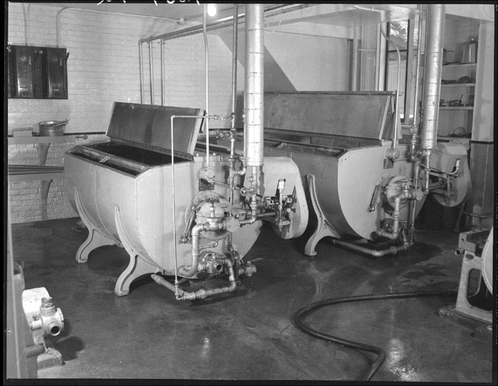 Pasteurisateurs à la fabrique de beurre à Saint-Hyacinthe, 1942, Archives nationales à Québec, Fonds Ministère de la Culture et des Communications, (03Q,E6,S7,SS1,D2,P7237), Paul Carpentier.