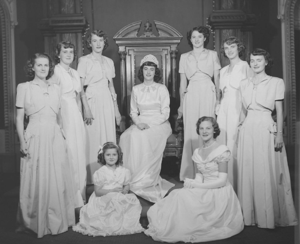 Reine des jeunes à l'exposition 1949 et sa suite. Québec.