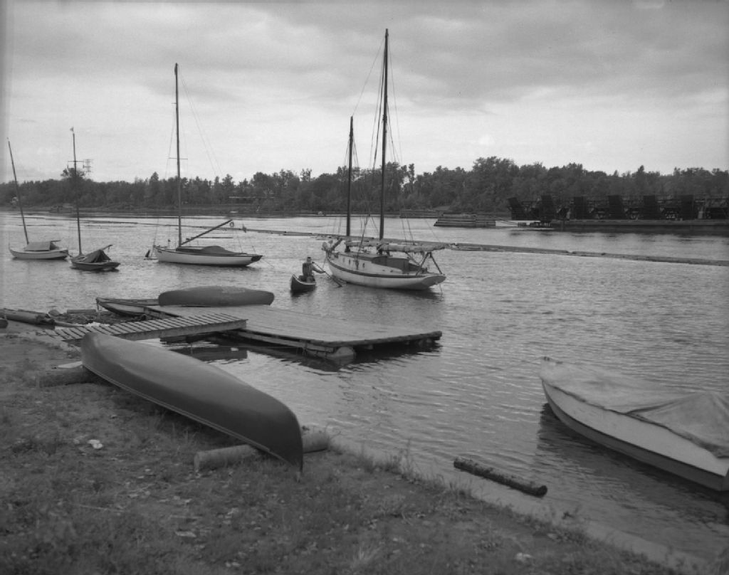 Vue de la rivière Saint-Maurice, près du Club Radisson, Trois-Rivières, 1949, Archives nationales à Québec, Fonds Ministère de la Culture et des Communications, (03Q,E6,S7,SS1,D2,P73087), Neuville Bazin.