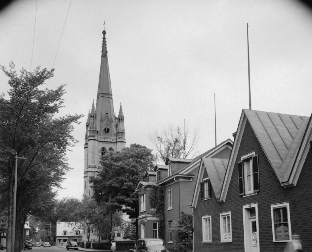 Cathédrale de Trois-Rivières, 1949, Archives nationales à Québec, Fonds Ministère de la Culture et des Communications, (03Q,E6,S7,SS1,D2,P73124), Neuville Bazin.