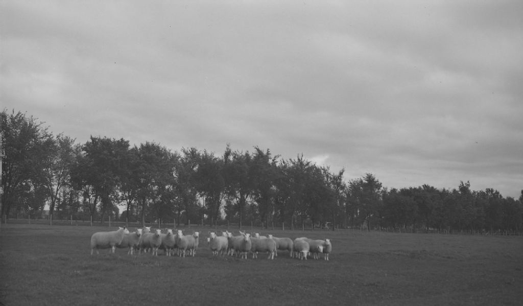 Vingt-cinq brebis de race "Chevriot du nord" qui serviront à la fondation d'un troupeau de mouton à la Ferme de Deschambault. Ces brebis ainsi que deux béliers ont été importés d'Écosse après une entente conjointe entre les services fédéraux et provinciaux de l'industrie animale. Deschambault, 1948, Archives nationales à Québec, Fonds Ministère de la Culture et des Communications, (03Q,E6,S7,SS1,D2,P73226), Andréa Saint-Pierre.