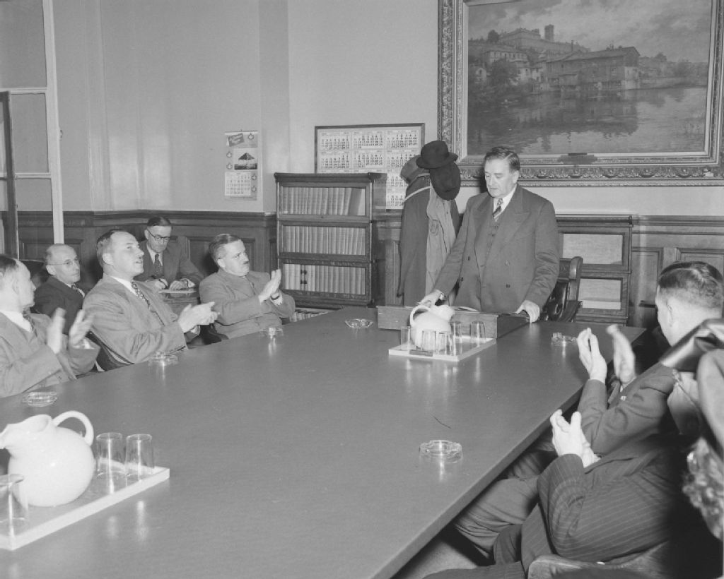 Instituteurs au Parlement. Comité des Bills privés, 1949, Archives nationales à Québec, Fonds Ministère de la Culture et des Communications, (03Q,E6,S7,SS1,D2,P73334), Neuville Bazin.