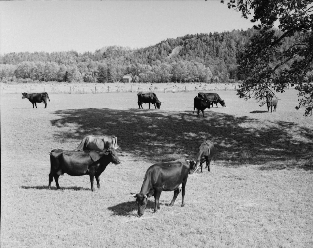 Troupeau chez Jos Labrie. Cap-Chat, Gaspé-Nord., 1949, Archives nationales à Québec, Fonds Ministère de la Culture et des Communications, (03Q,E6,S7,SS1,D2,P73352), Photographe non identifié.