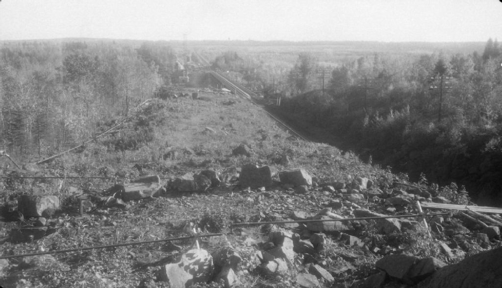 Coupe de roc au nord de la rivière Chaudière près du pont de Québec, 1949, Archives nationales à Québec, Fonds Ministère de la Culture et des Communications, (03Q,E6,S7,SS1,D2,P73548), Jean-Marie Reid.