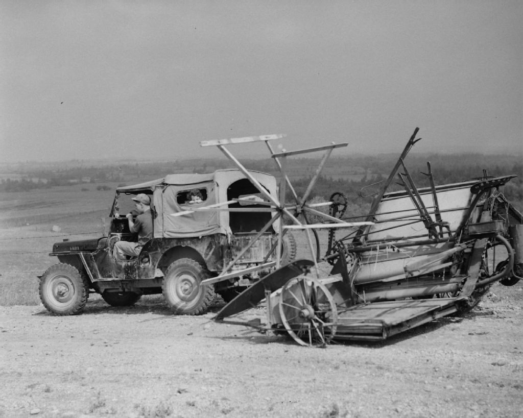 Moissonneuse chez Ovide Robitaille. Dupuy, Abitibi., 1949, Archives nationales à Québec, Fonds Ministère de la Culture et des Communications, (03Q,E6,S7,SS1,D2,P73604), Omer Beaudoin.