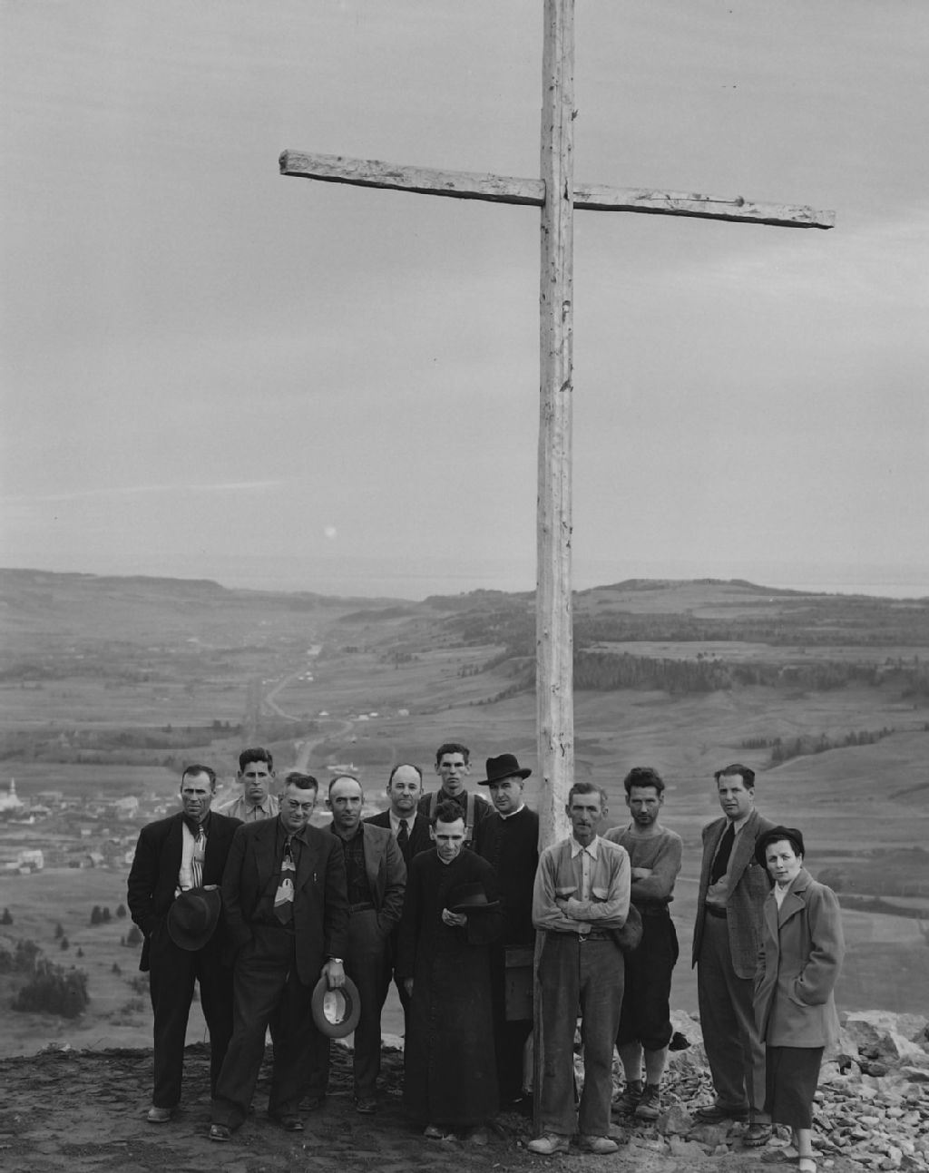 L'ancienne croix de bois sur la montagne à Clermont (Charlevoix)., 1949, Archives nationales à Québec, Fonds Ministère de la Culture et des Communications, (03Q,E6,S7,SS1,D2,P74187), Omer Beaudoin.