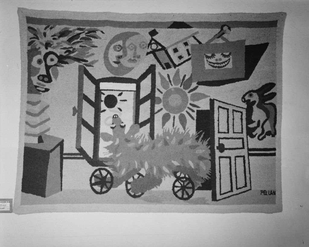 Tapis fait au crochet par l'Atelier Irène Auger. 1.5 X 2 verges. Premier prix du Concours artistique de la Province de Québec, 1948. Section Arts décoratifs. Musée provincial