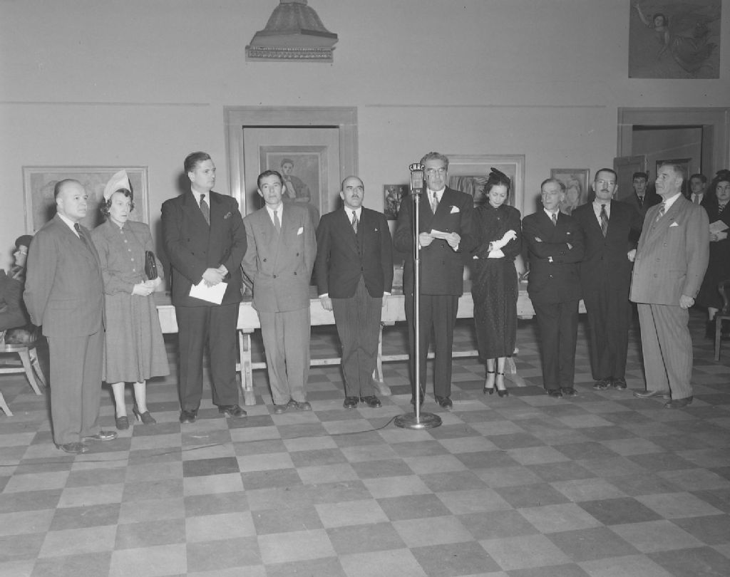 Exposition Émile Borduas, Irène Letendre, Stanley Cosgrove, Goodridge Roberts. Musée de la Province de Québec, 1949, Archives nationales à Québec, Fonds Ministère de la Culture et des Communications, (03Q,E6,S7,SS1,D2,P74536), Neuville Bazin.