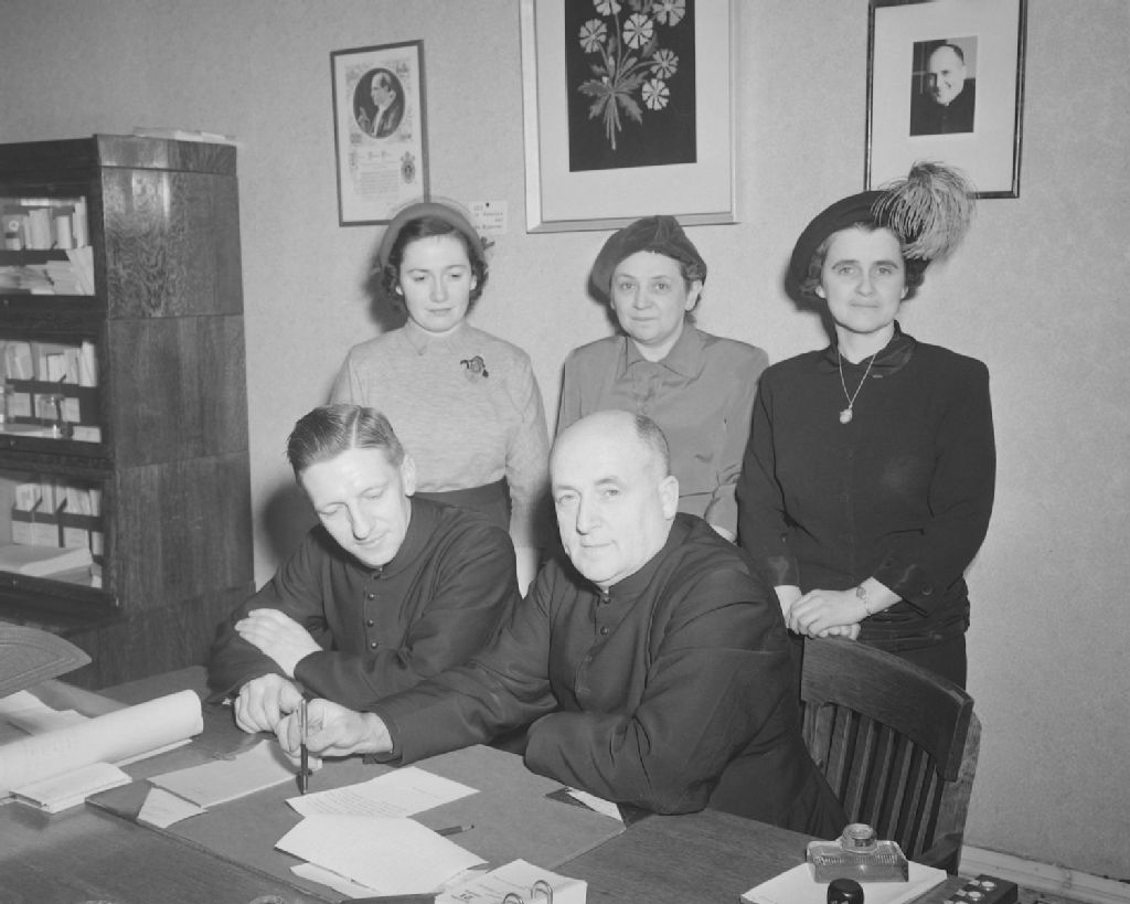 Monseigneur Tessier, abbé Paul-H. Carignan, mademoiselle Bureau, mademoiselle Tessier et mademoiselle Deshaies. 110 Saint-Eustache, Québec