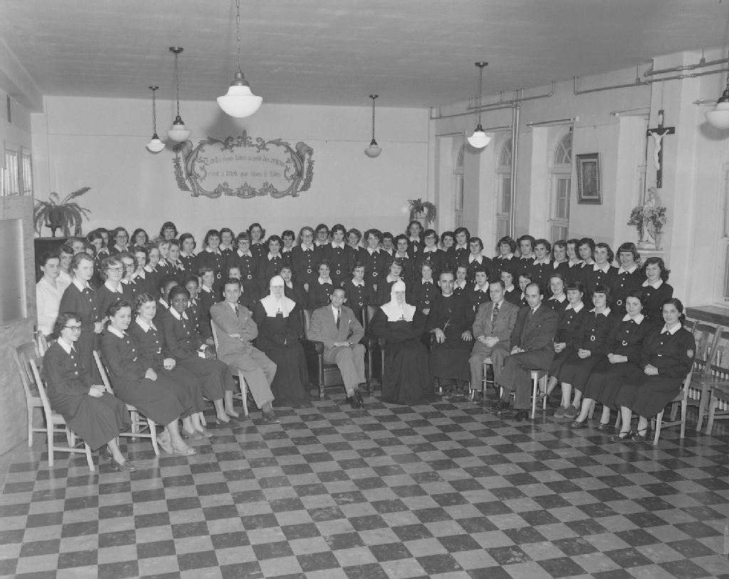 Groupe d'élèves, religieuses, visiteurs. École supérieure de Loretteville