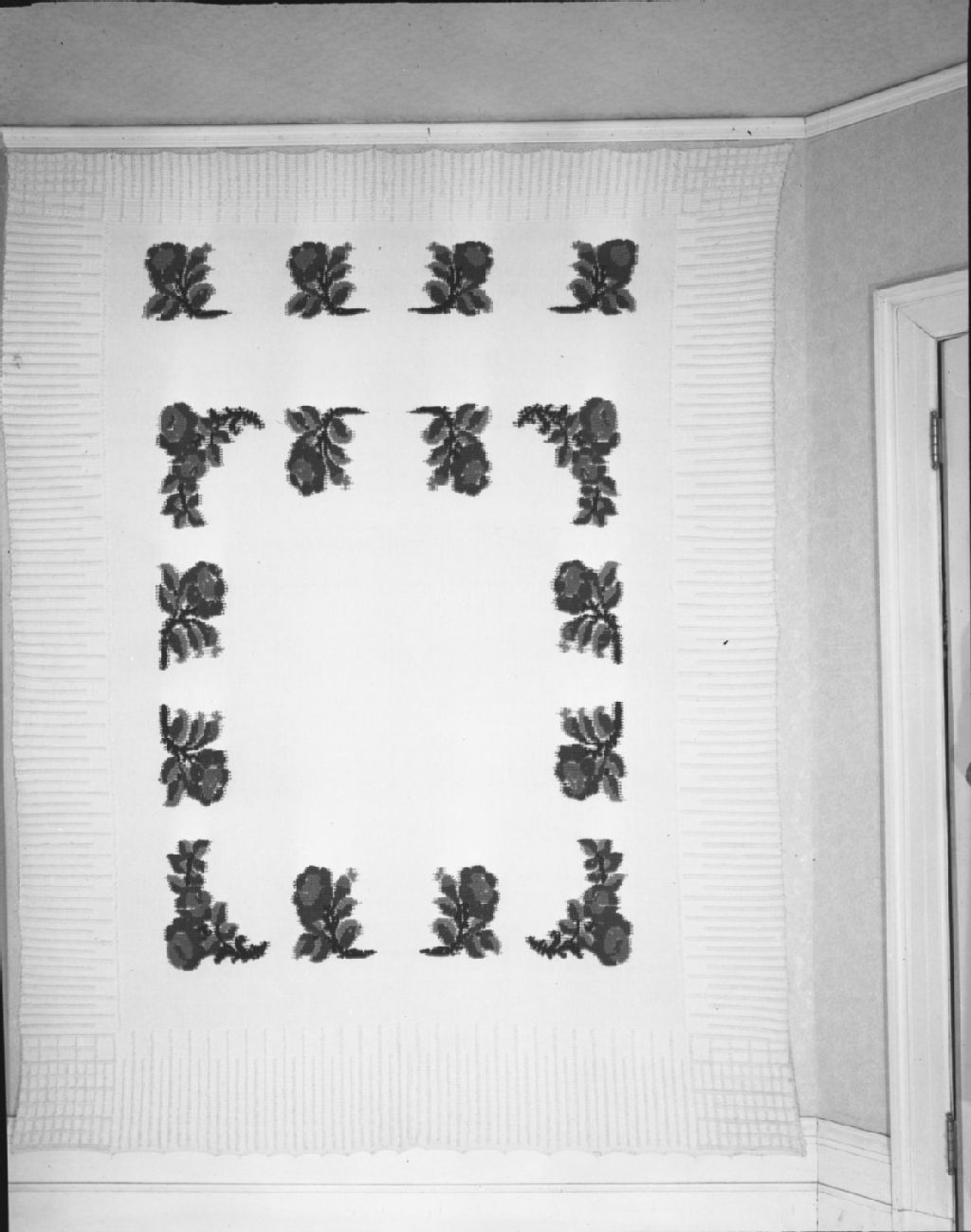 Couvre-lit. Les roses. Arts domestiques, 1950, Archives nationales à Québec, Fonds Ministère de la Culture et des Communications, (03Q,E6,S7,SS1,D2,P75156), Neuville Bazin.