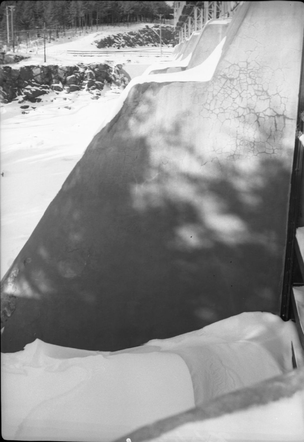 Barrage sur la rivière Saint-Maurice, branche est, entre Almaville et Ile Melville à Shawinigan Falls. Comté de Saint-Maurice, 1950, Archives nationales à Québec, Fonds Ministère de la Culture et des Communications, (03Q,E6,S7,SS1,D2,P75172), C.-R. Yespelkis.