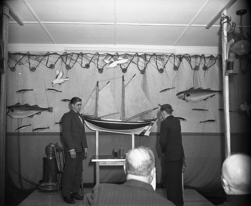 Scène prise dans une salle de cours à l'occasion de la collation des diplômes à l'École des Pêcheries de Grande-Rivière, 1950, Archives nationales à Québec, Fonds Ministère de la Culture et des Communications, (03Q,E6,S7,SS1,D2,P75206), Gustave Bédard.