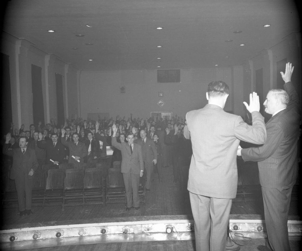 Prise en masse de l'engagement de conservation en matière de chasse et de pêche du Casting Club, 1950, Archives nationales à Québec, Fonds Ministère de la Culture et des Communications, (03Q,E6,S7,SS1,D2,P75211), Gustave Bédard.