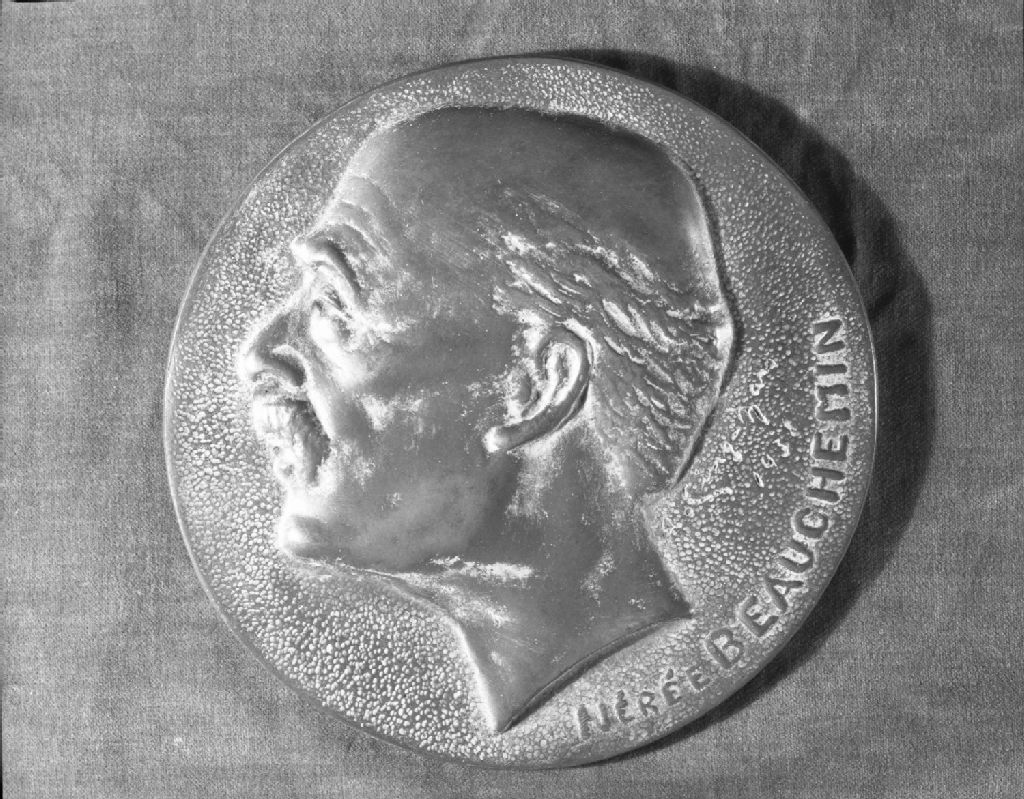 Médaillon Nérée-Beauchemin par Alonzo Cinq-Mars, 1950, Archives nationales à Québec, Fonds Ministère de la Culture et des Communications, (03Q,E6,S7,SS1,D2,P75242), Neuville Bazin.