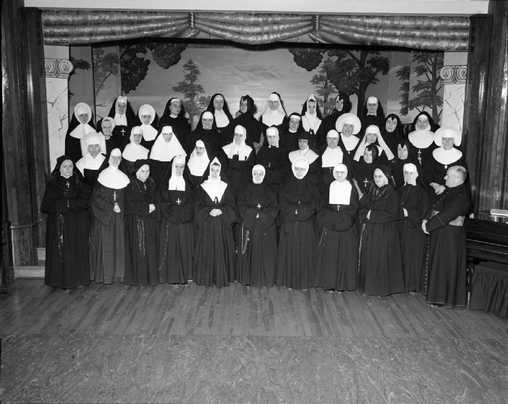 Monseigneur Albert Tessier et un groupe de religieuses. École supérieure de Loretteville