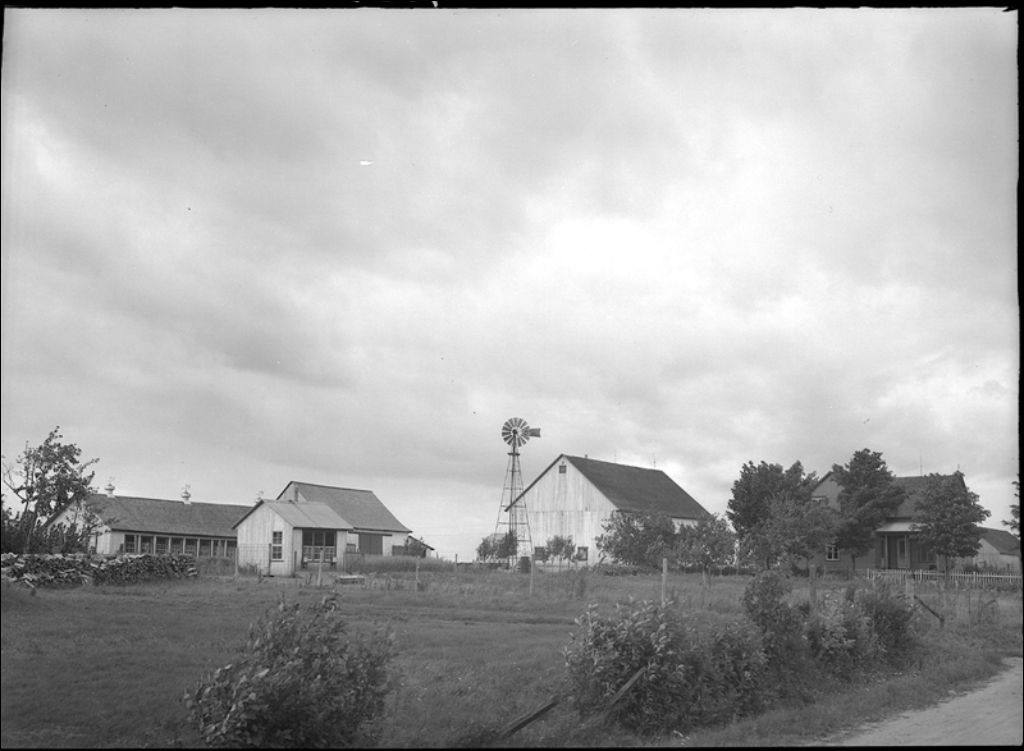 Bâtisses de Théo. Parent à Saint-Isidore, 1942, Archives nationales à Québec, Fonds Ministère de la Culture et des Communications, (03Q,E6,S7,SS1,D2,P7538), Fernand Dufour.