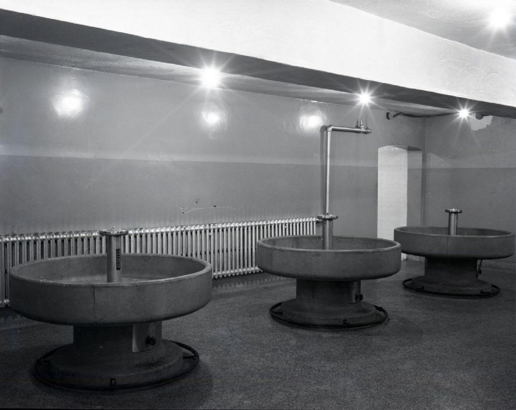 Lavabo des élèves. École technique, boulevard Langelier, Québec, 1950, Archives nationales à Québec, Fonds Ministère de la Culture et des Communications, (03Q,E6,S7,SS1,D2,P75516), Neuville Bazin.