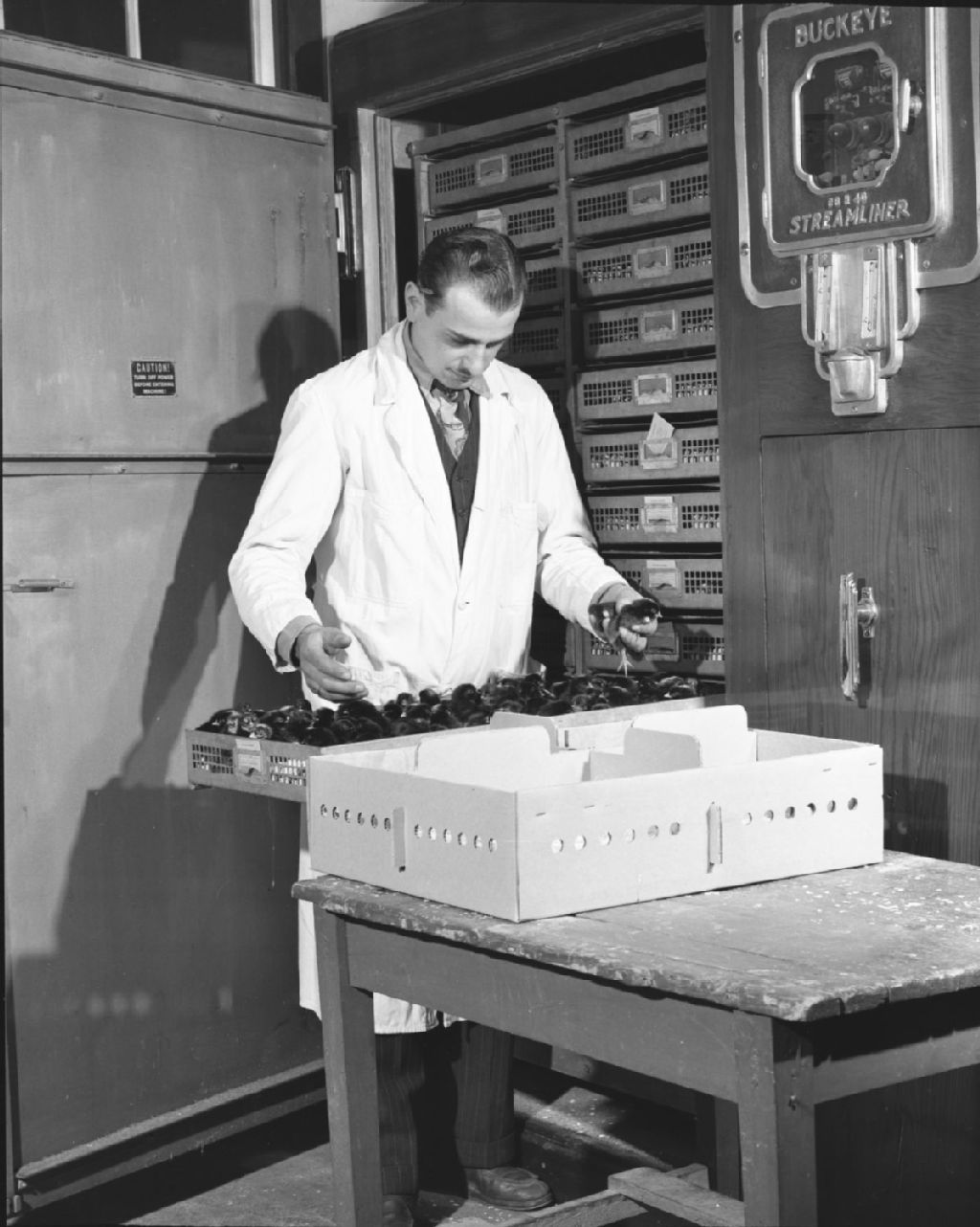 Aviculture: vues intérieures. Saint-Augustin, comté de Portneuf., 1950, Archives nationales à Québec, Fonds Ministère de la Culture et des Communications, (03Q,E6,S7,SS1,D2,P75537), Omer Beaudoin.