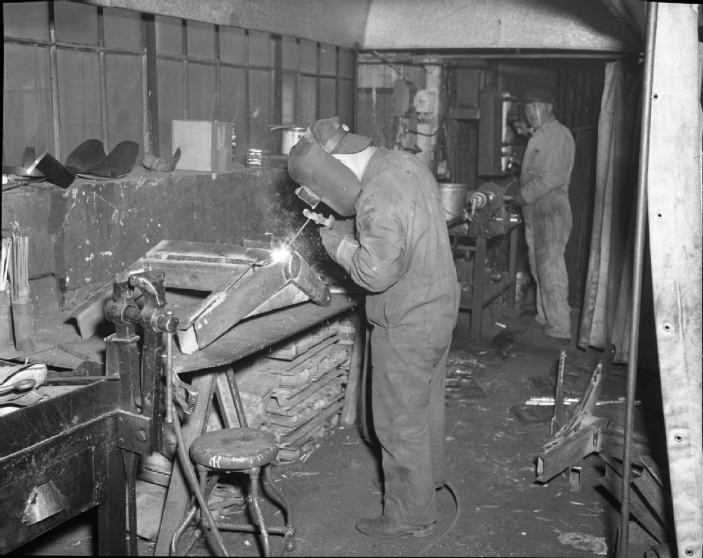Soudure à l'acétylène à l'atelier (Léon Thivierge, soudeur). Entrepôt de Saint-Malo