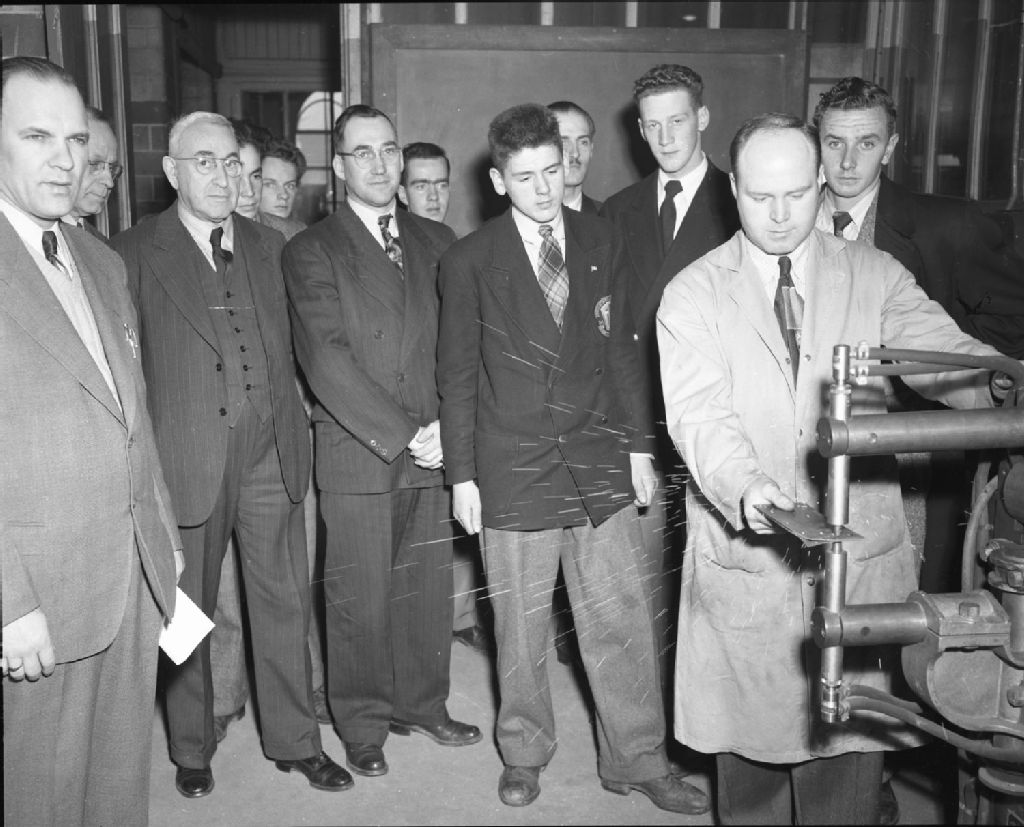 Visite par des industriels et le public. École technique de Québec, 1950, Archives nationales à Québec, Fonds Ministère de la Culture et des Communications, (03Q,E6,S7,SS1,D2,P76026), Neuville Bazin.
