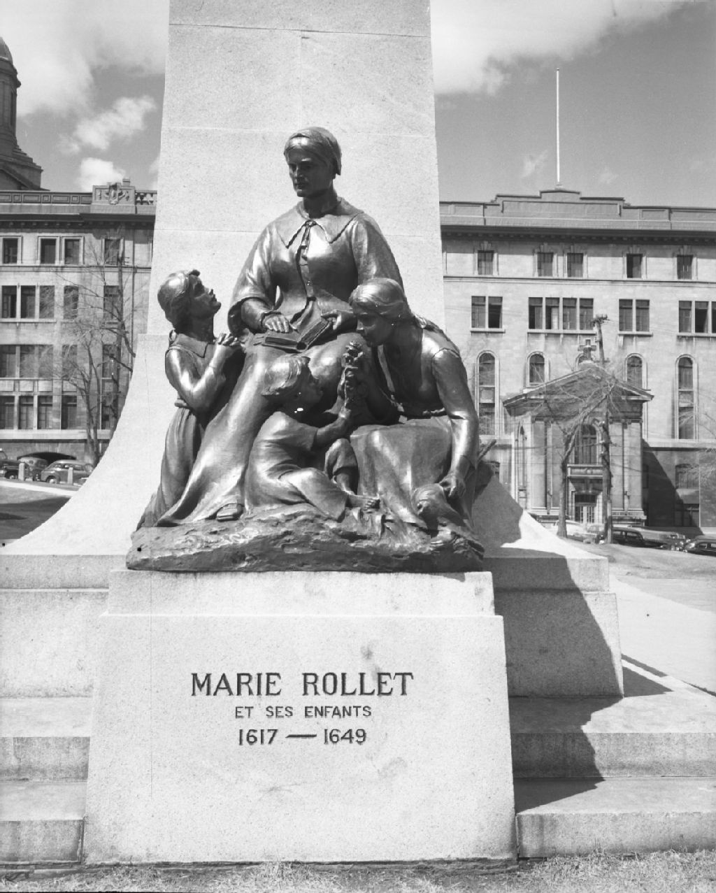 Monument Marie-Rollet et ses enfants, 1617-1649, 1950, Archives nationales à Québec, Fonds Ministère de la Culture et des Communications, (03Q,E6,S7,SS1,D2,P76057), Neuville Bazin.