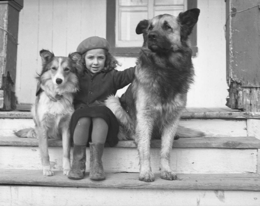 Fillette et chiens. Sainte-Claire, comté Dorchester