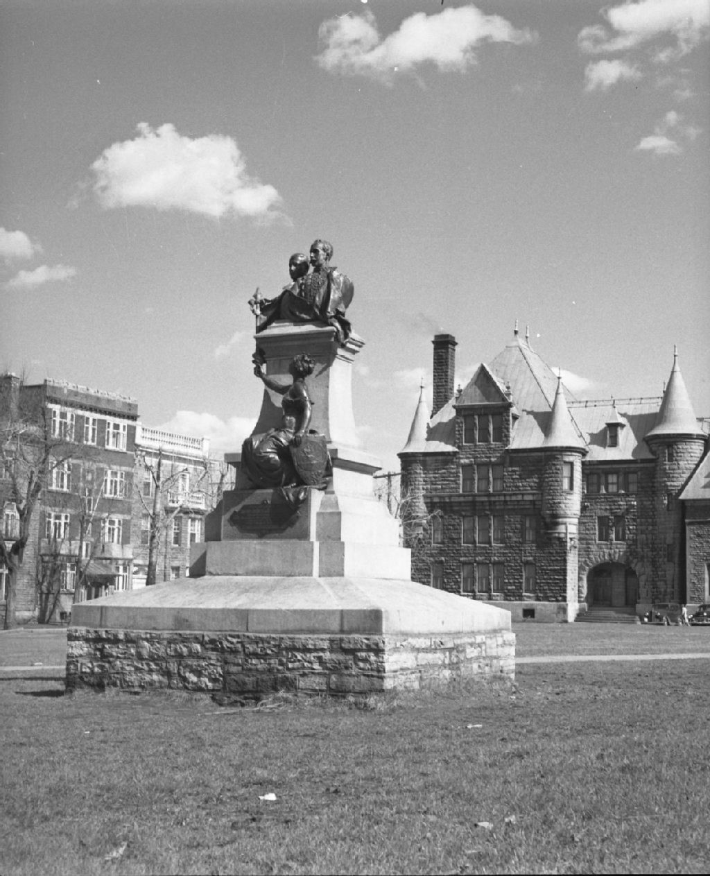 Monument Short-Wallick, place George V en face du manège militaire. Québec, 1949, Archives nationales à Québec, Fonds Ministère de la Culture et des Communications, (03Q,E6,S7,SS1,D2,P76257), Paul Carpentier.