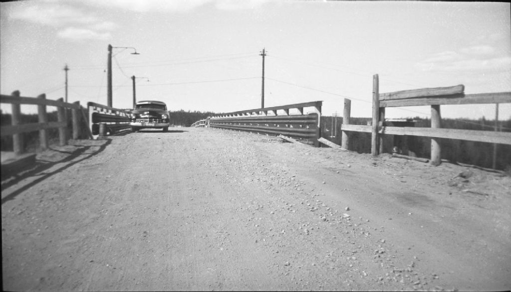 Viaduc au dessus de la conduite forcée de la Quebec North Shore. Photographie montrant une partie du travail exécuté par Henri Gaudreau. Canton Ragueneau, comté de Saguenay