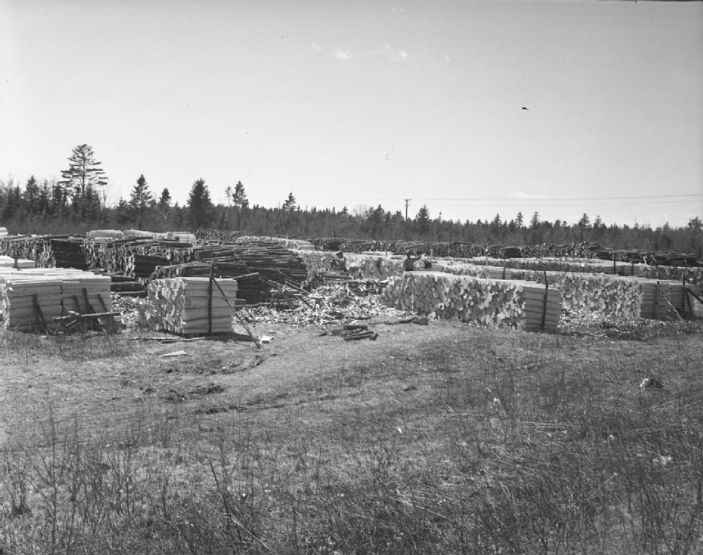Empilement de bois à pulpe, brut et écorcé. Sainte-Étienne-de-Lauzon