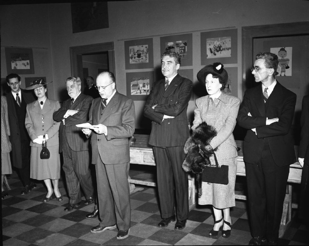 Exposition. École des Beaux-Arts. Enfants. 11 mai 1950. Musée de la Province de Québec, 1950, Archives nationales à Québec, Fonds Ministère de la Culture et des Communications, (03Q,E6,S7,SS1,D2,P76389), Neuville Bazin.