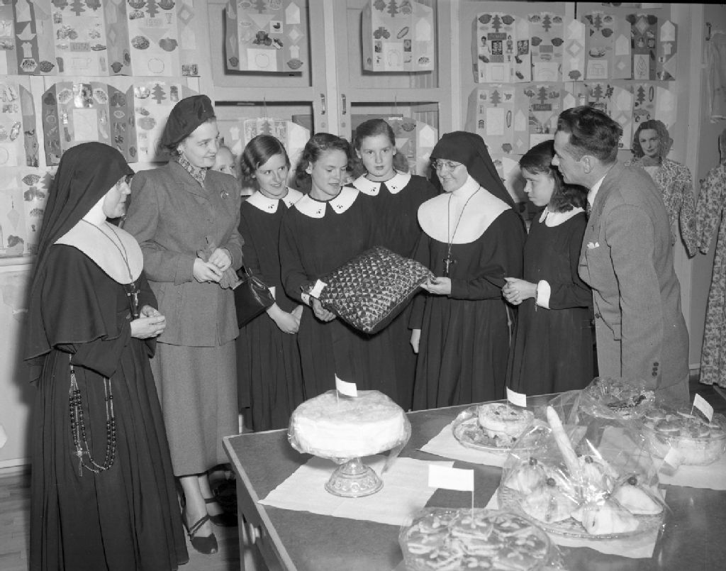 Une élève explique un travail (coussin). Sainte-Thérèse-de-Lisieux, comté de Québec
