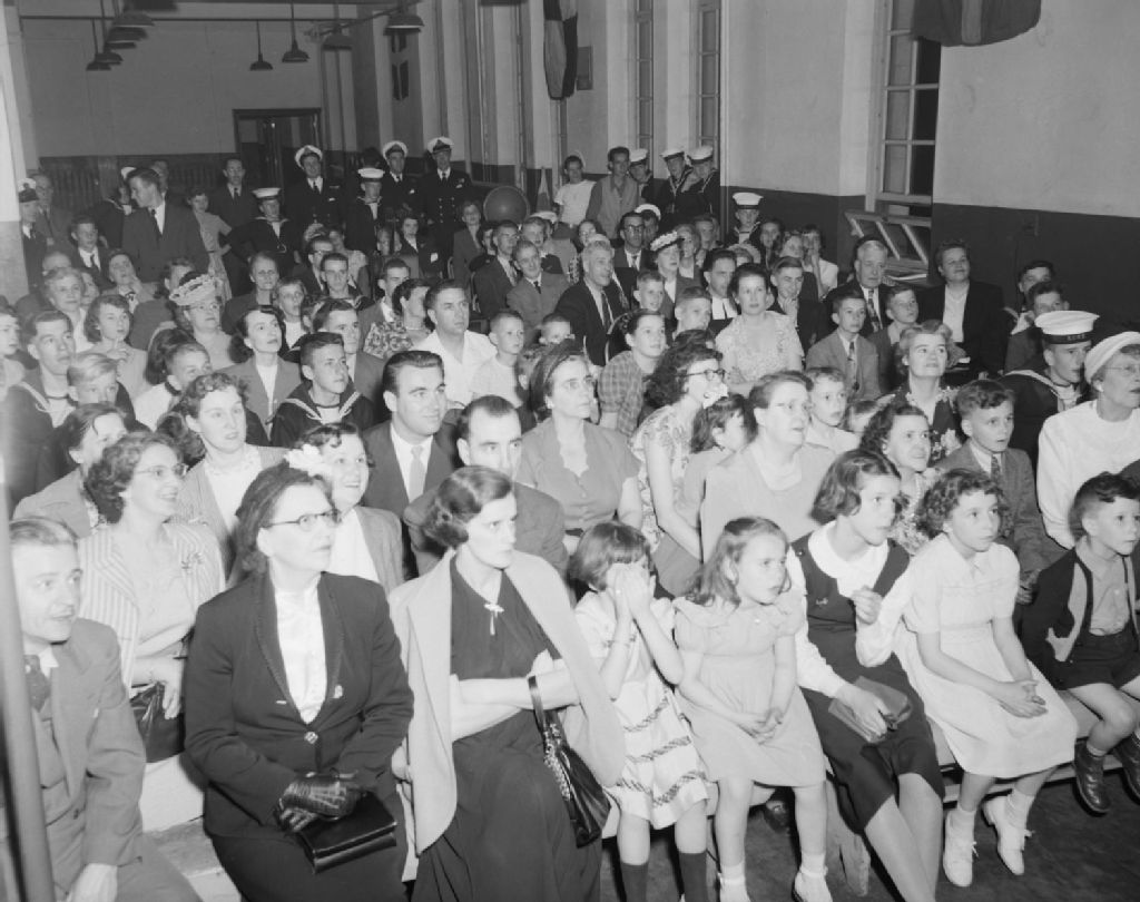 Les parents et invités des cadets de marine Champlain assistent à une projection cinématographique lors de la démonstration annuelle des cadets de marine Champlain, H. M. C. S. Montcalm
