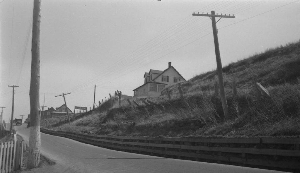 Route numéro 6 devant et aux environs de la propriété de monsieur Arthur Ross, Saint-Joachim-de-Tourelle, comté de Gaspé-Nord, 1950, Archives nationales à Québec, Fonds Ministère de la Culture et des Communications, (03Q,E6,S7,SS1,D2,P76785), Jean Bastien.