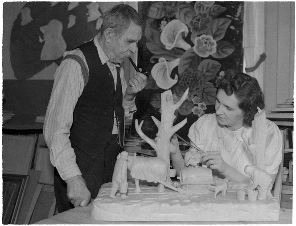 René Lavoie et mademoiselle Bolduc, sculpteurs sur bois, à Baie-Saint-Paul