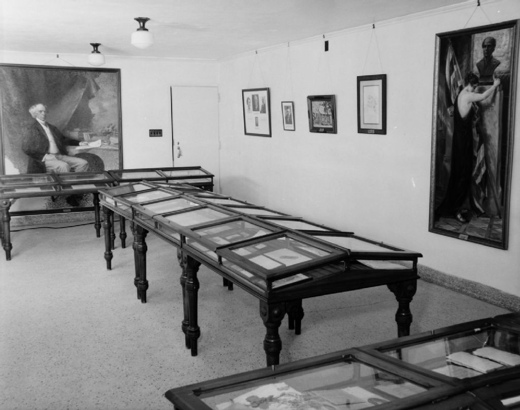 Musée Laurier. La salle des manuscrits du premier étage. Au fond, portrait inachevé de Laurier par Suzor-Côté À droite, hommage à Laurier par le peintre Gerorges Delfosse. Arthabaska